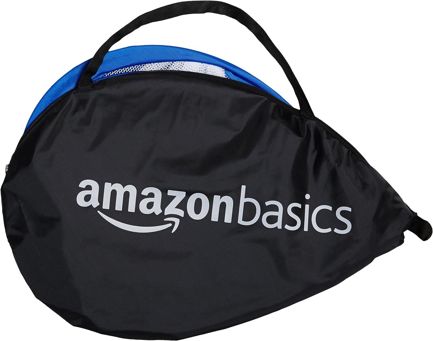 Includes (2) 2.5-foot blue soccer goal nets, ground stakes, and carrying bag