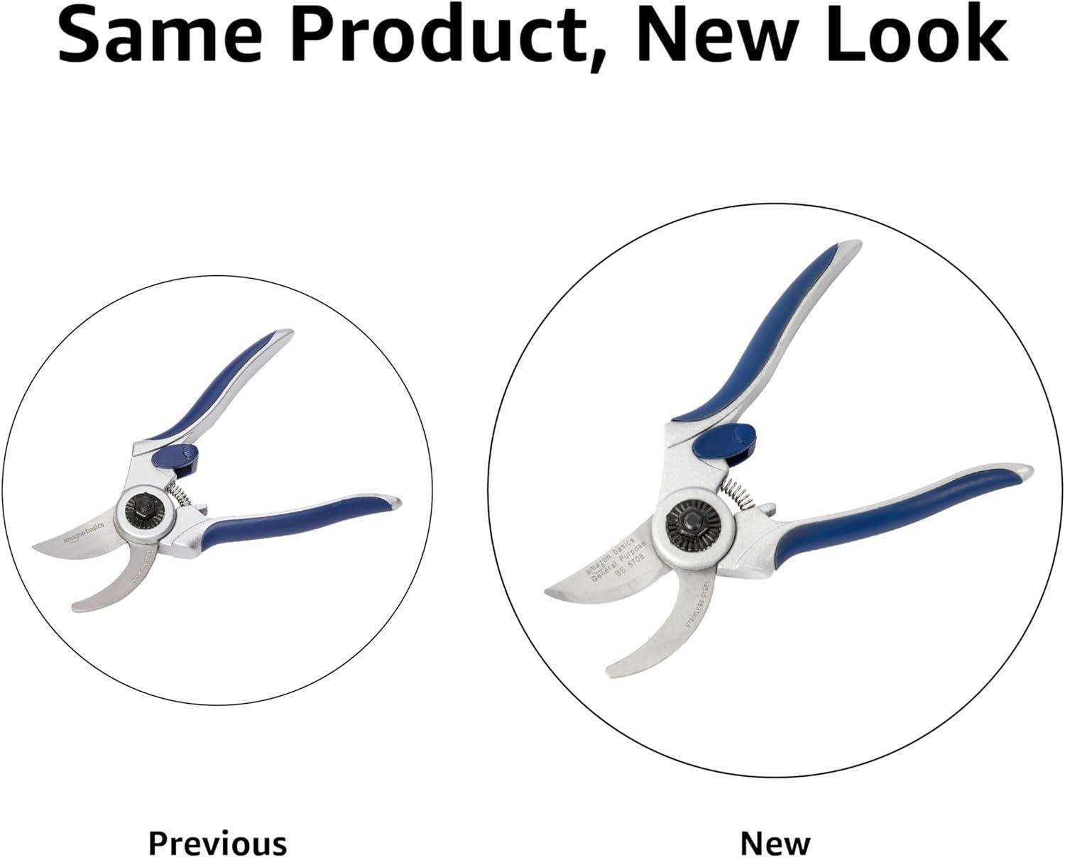 Amazon Basics Professional Hand Pruners, Pruning Shears for gardening, 7-inch Steel Bypass Garden Scissors, Blue(8-inch)