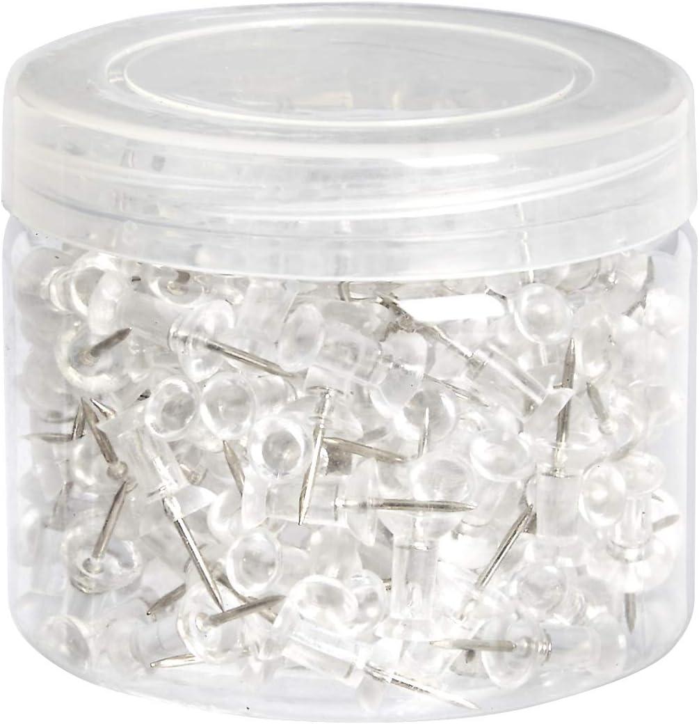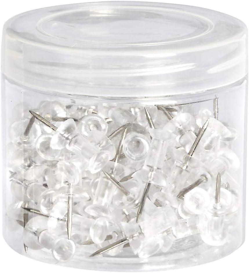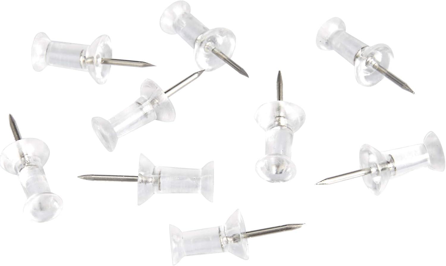 Amazon Basics Push Pins Tacks, Steel Point, Clear Plastic Head, for Bulletin Board, Maps, Posters, and Craft Projects, 100-Pack(Clear)