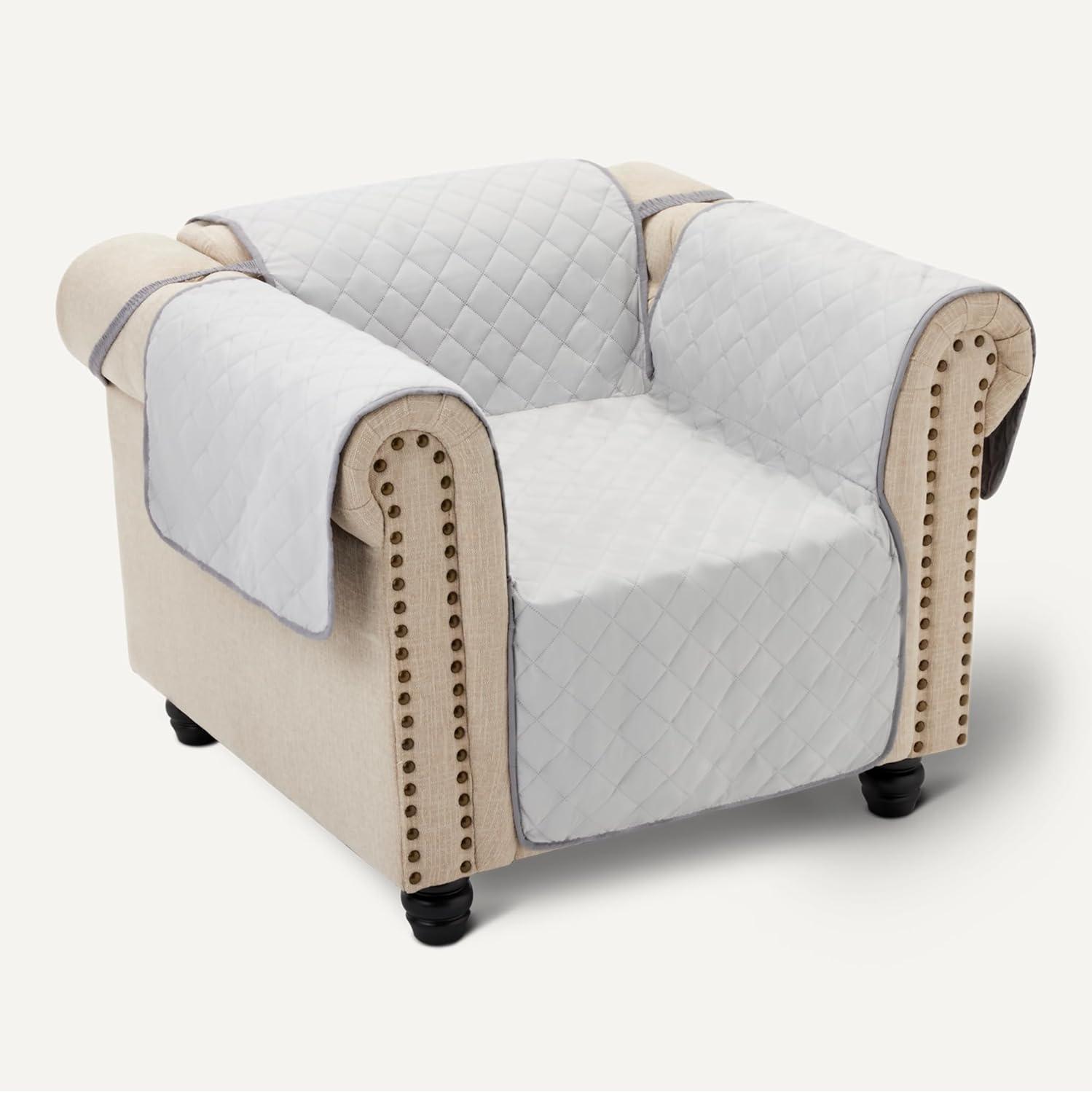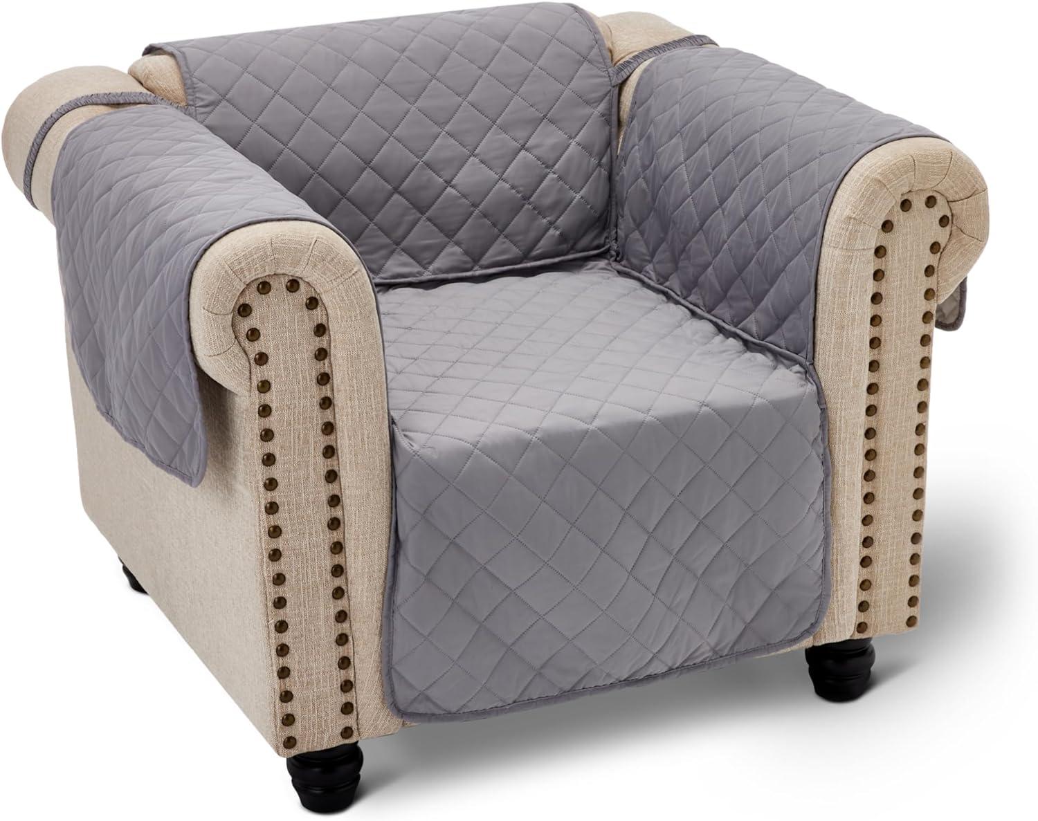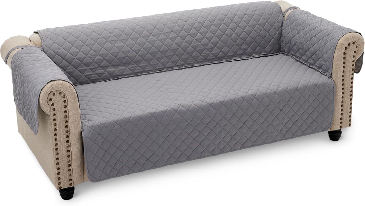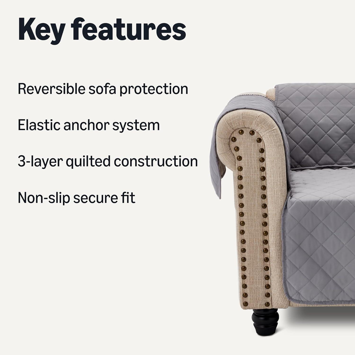 Amazon Basics Quilt Reversible Sofa Slipcover, Three seat Sofa, Large, Gray/Light Gray(Gray/Light Gray Reversible)