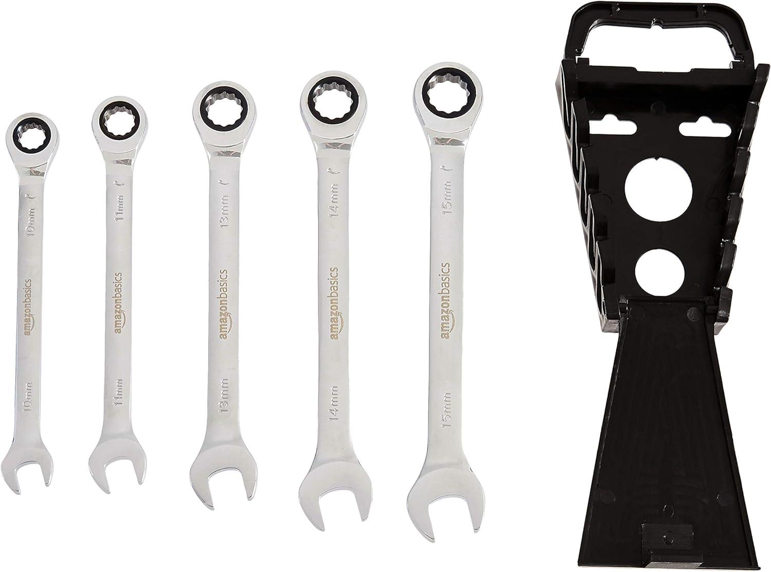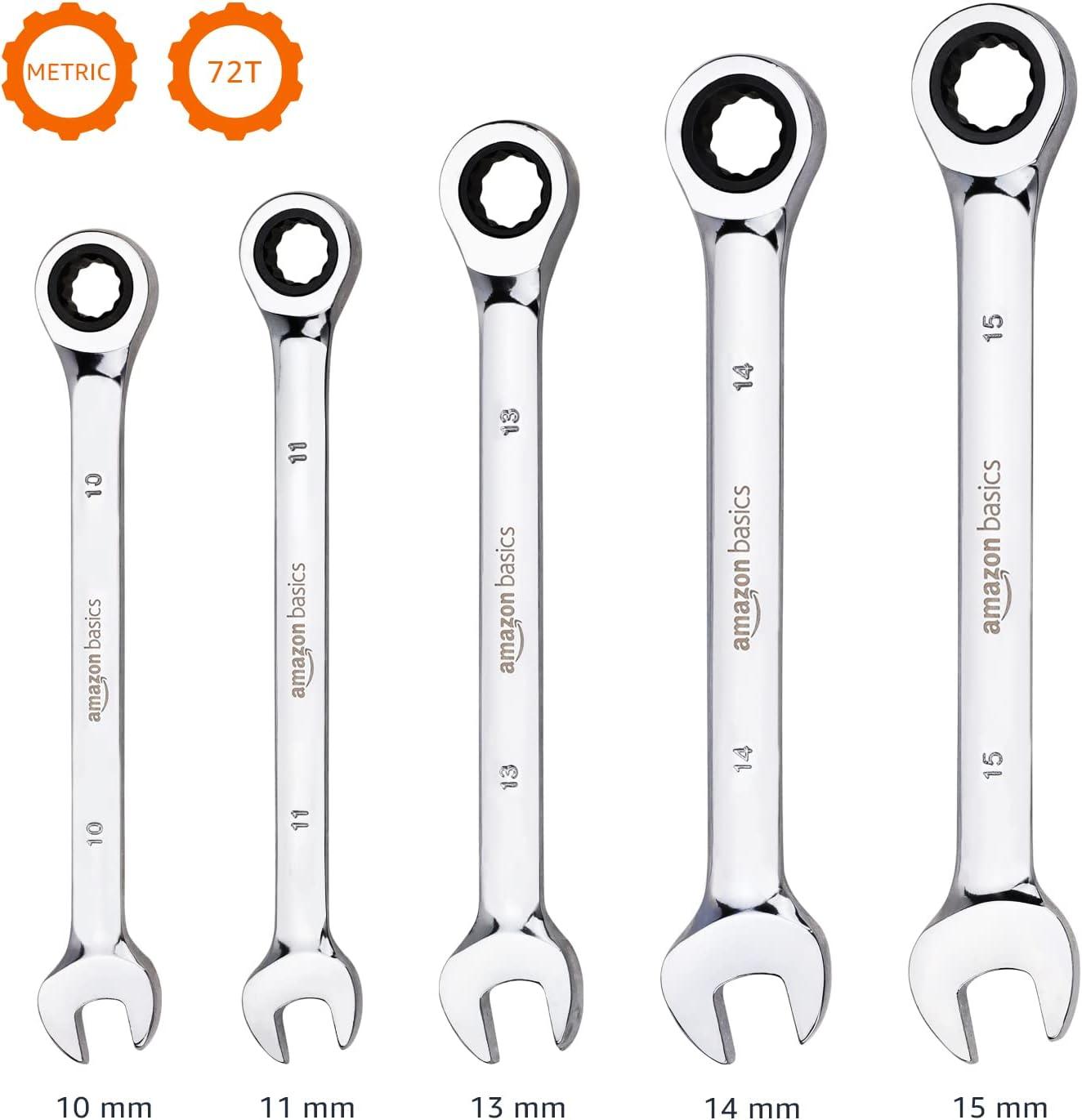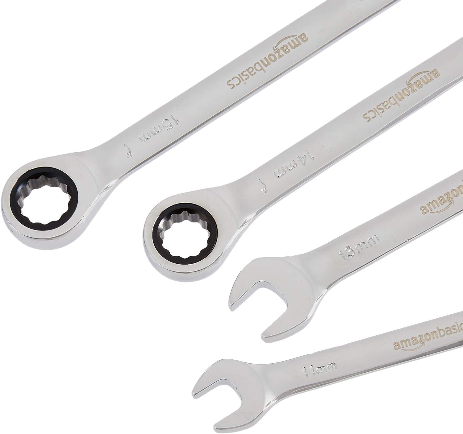 Amazon Basics Ratcheting Combination Wrench Set – Metric, 7-Piece