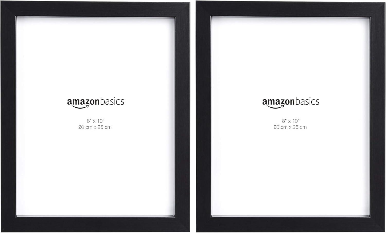 Amazon Basics Rectangular Photo Picture Frame, 8" x 10", Pack of 2, Nickel(Black)