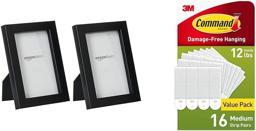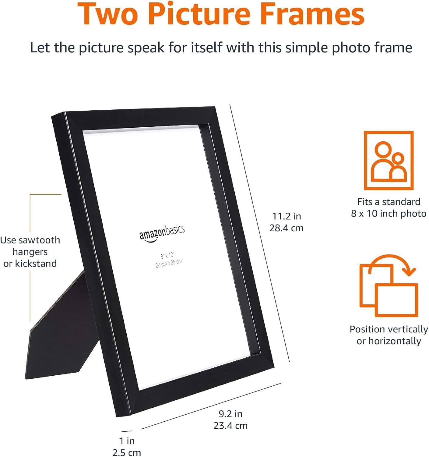 Amazon Basics Rectangular Photo Picture Frame, 8″ x 10″, Pack of 2, Nickel(Black)