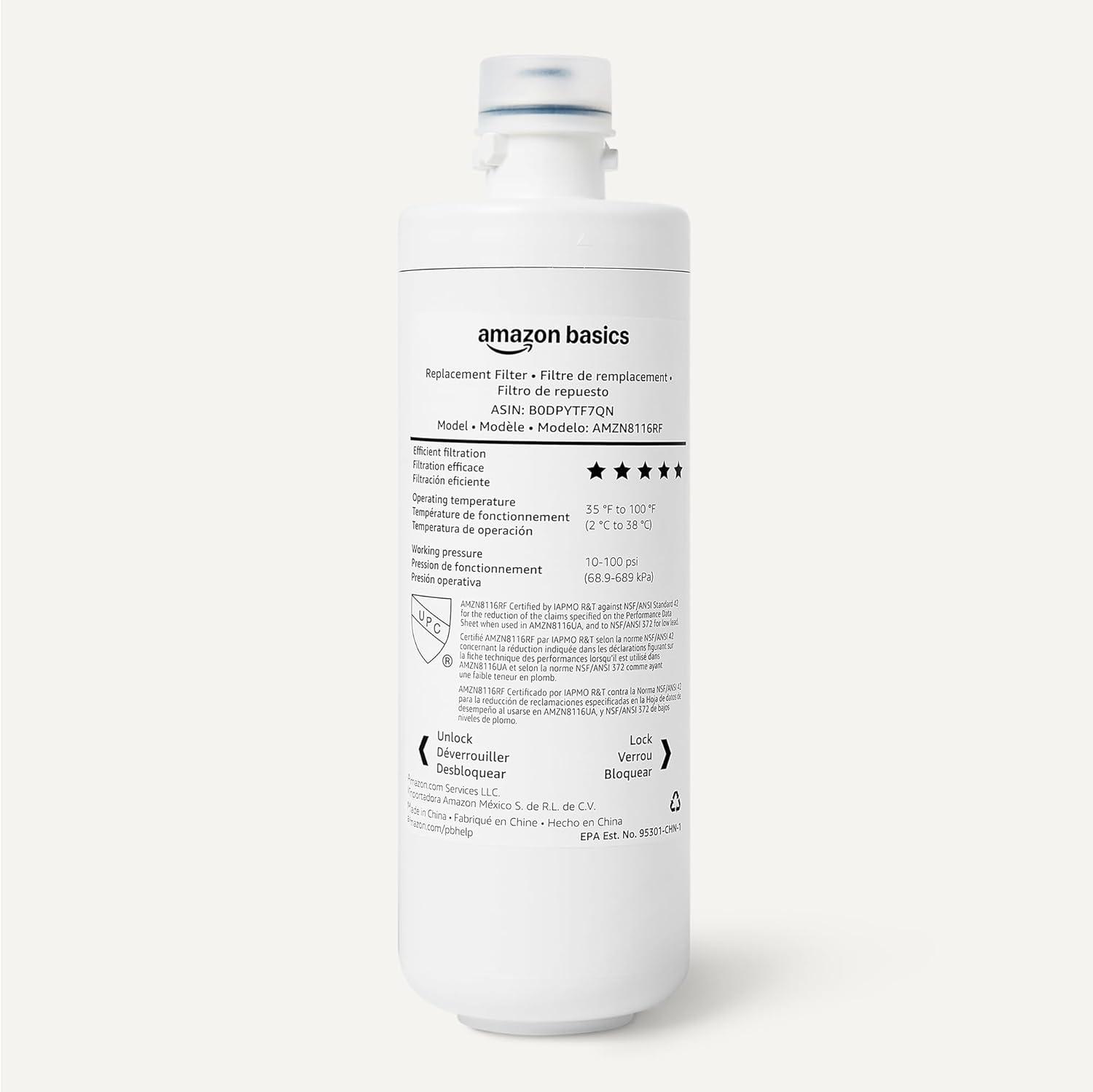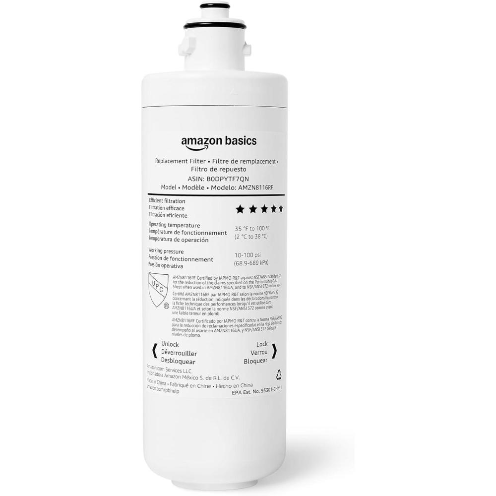 Be the first to review “Amazon Basics Replacement Filter Cartridge for Under Sink Water Filter, NSF/ANSI 42 & 372 Certified, Service Life 1 Year, 11,000 Gallons, White(11 000 Gallons)”