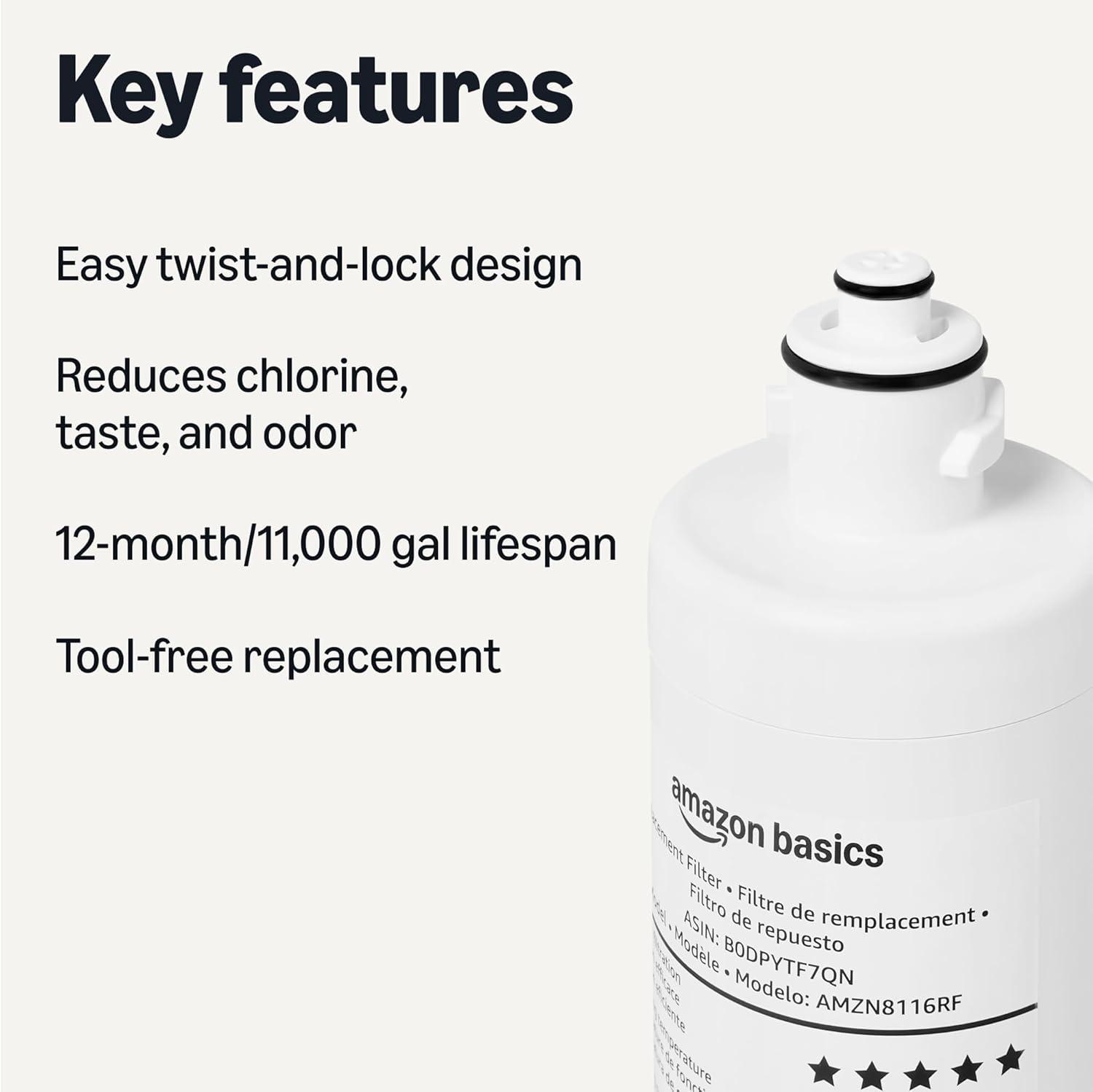 Amazon Basics Replacement Filter Cartridge for Under Sink Water Filter, NSF/ANSI 42 & 372 Certified, Service Life 1 Year, 11,000 Gallons, White(11 000 Gallons)