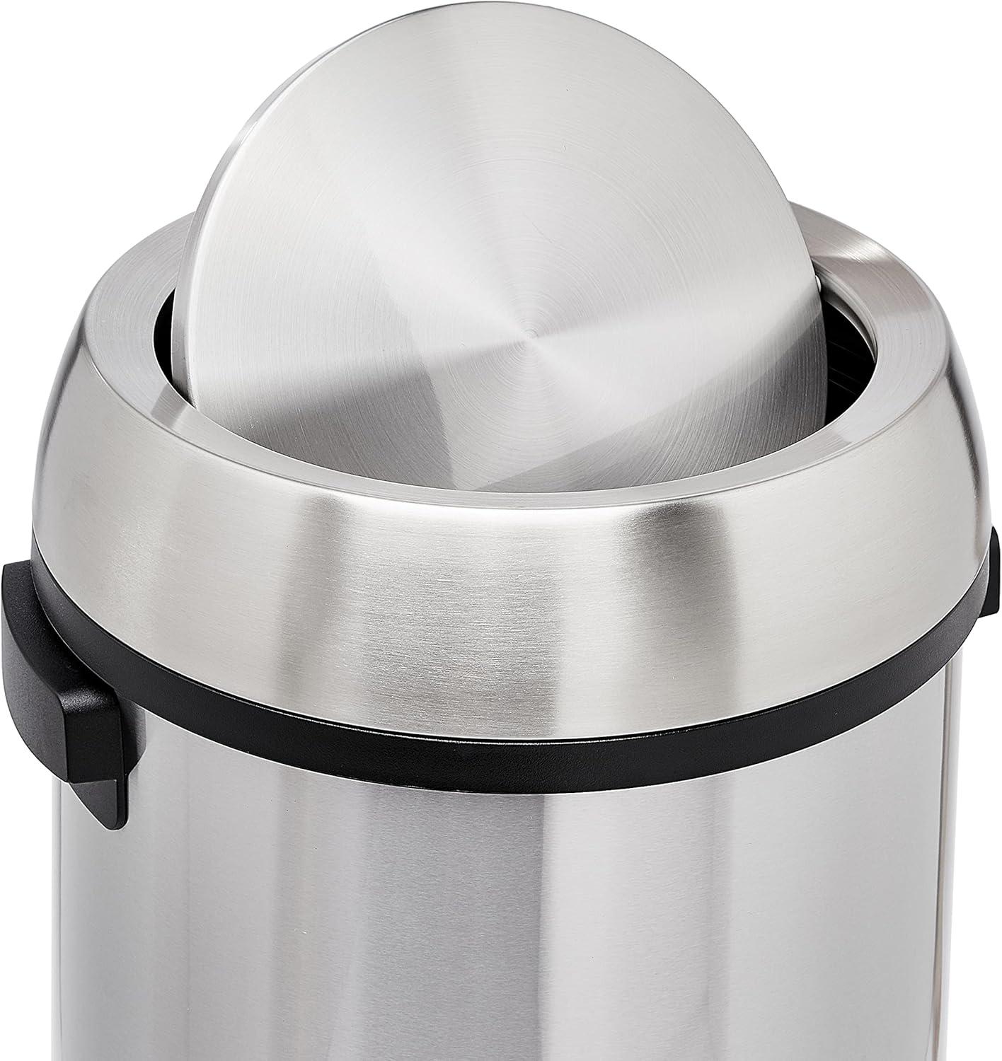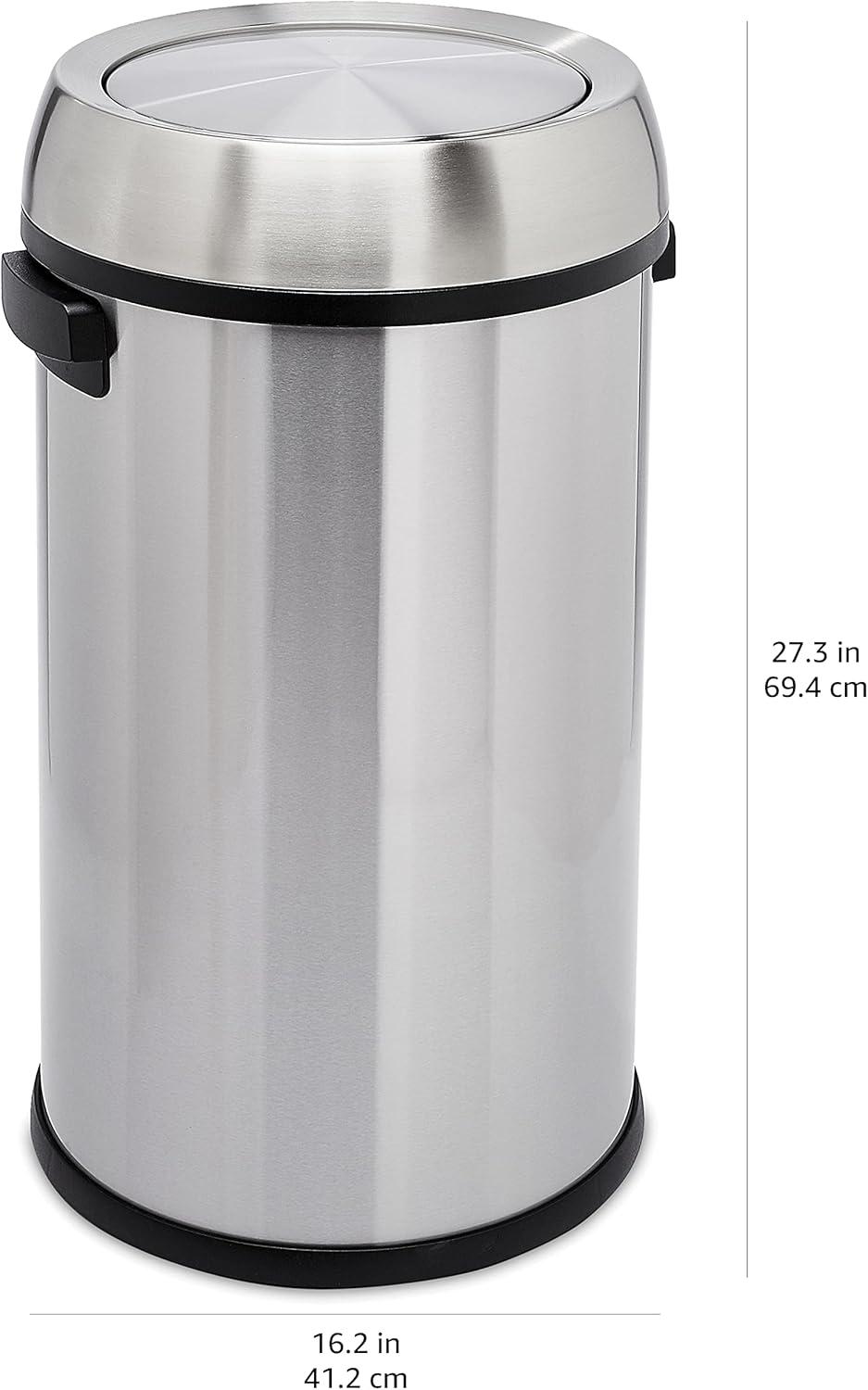 Amazon Basics Round Stainless Steel Trash Can with Swing lid – 65 Liter