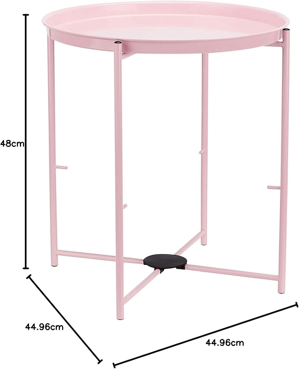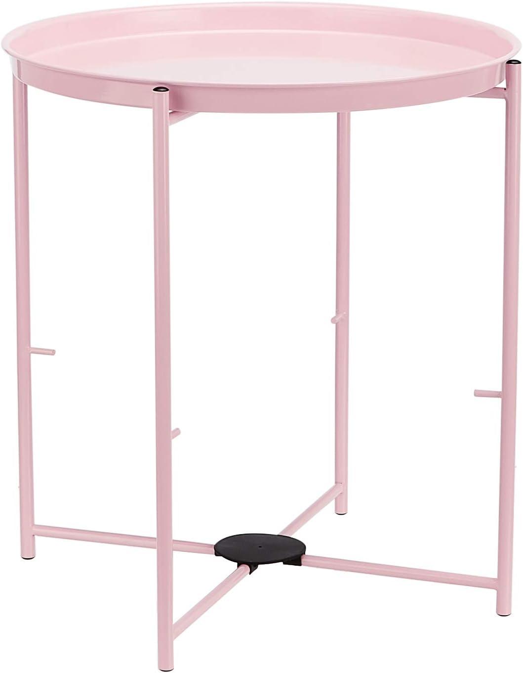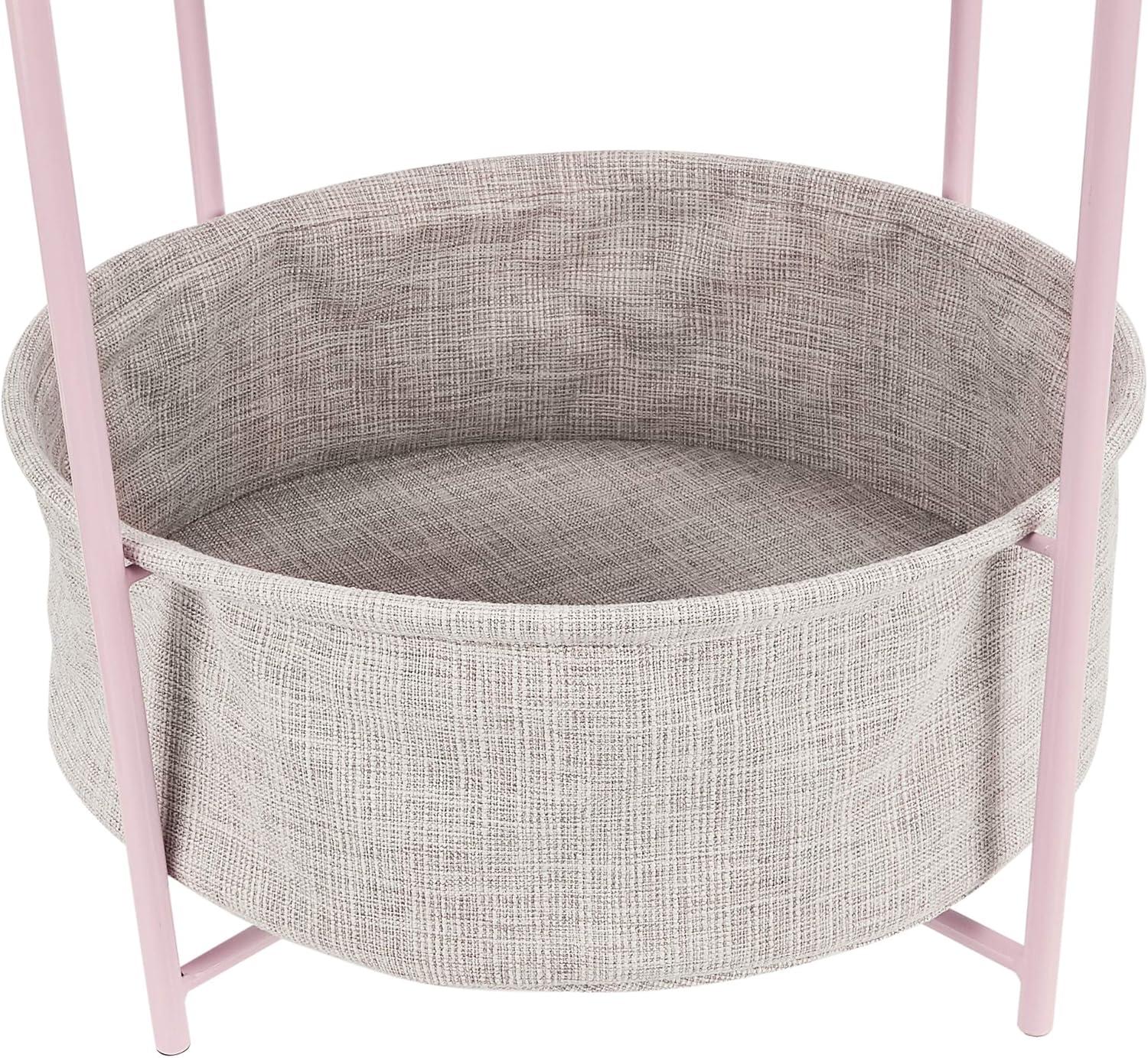 Amazon Basics Round Storage End Table, Side Table with Cloth Basket – Pink/Heather Gray, 19 x 18 x 18 Inches