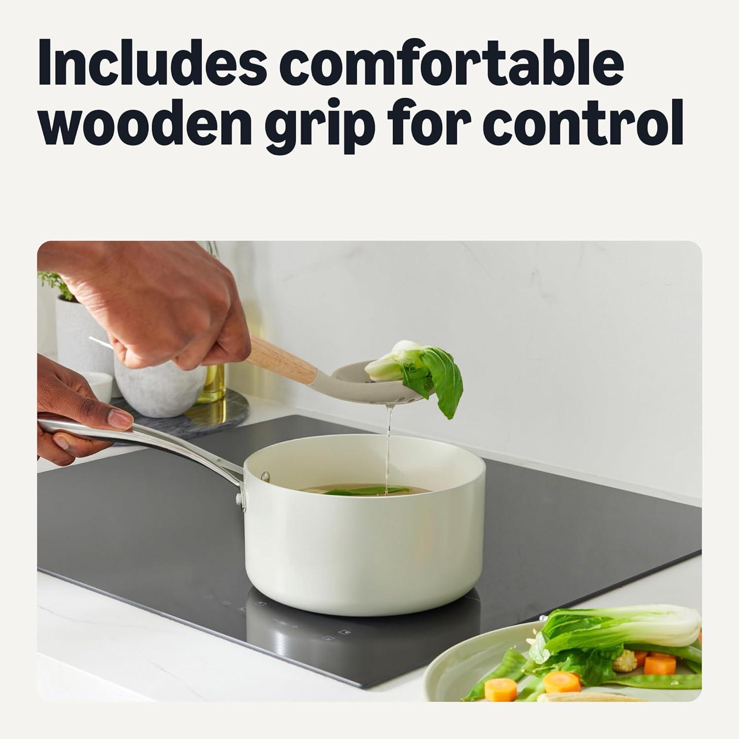 WOODEN HANDLES: Wooden handle with comfortable grip provides secure control while cooking