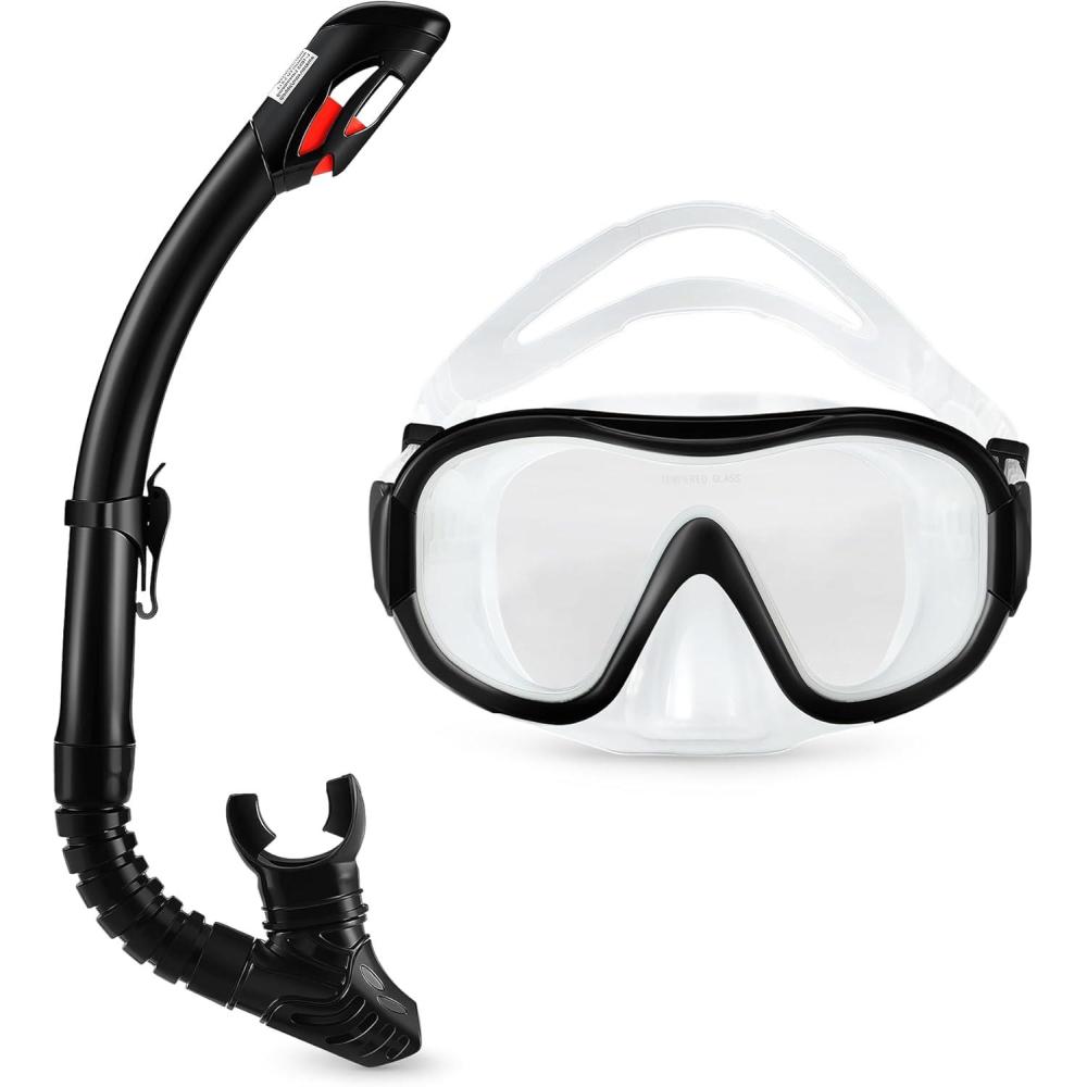 Amazon Basics Snorkel Mask with Dry-Top Tube and Carry Bag, Snorkeling Gear for Adults, Black