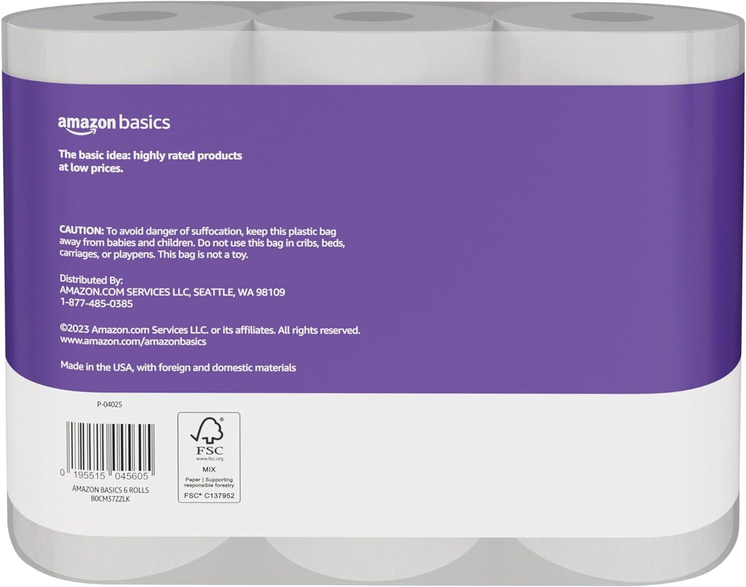 Amazon Basics Soft and Strong 2-Ply Toilet Paper, 18 Ultra Rolls = 72 Regular Rolls, Unscented, 340 Sheet (3 Packs of 6)(340 sheet (Pack of 6))