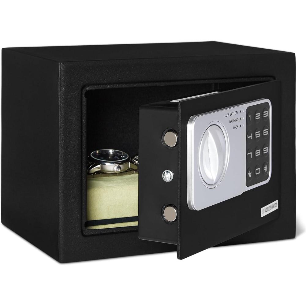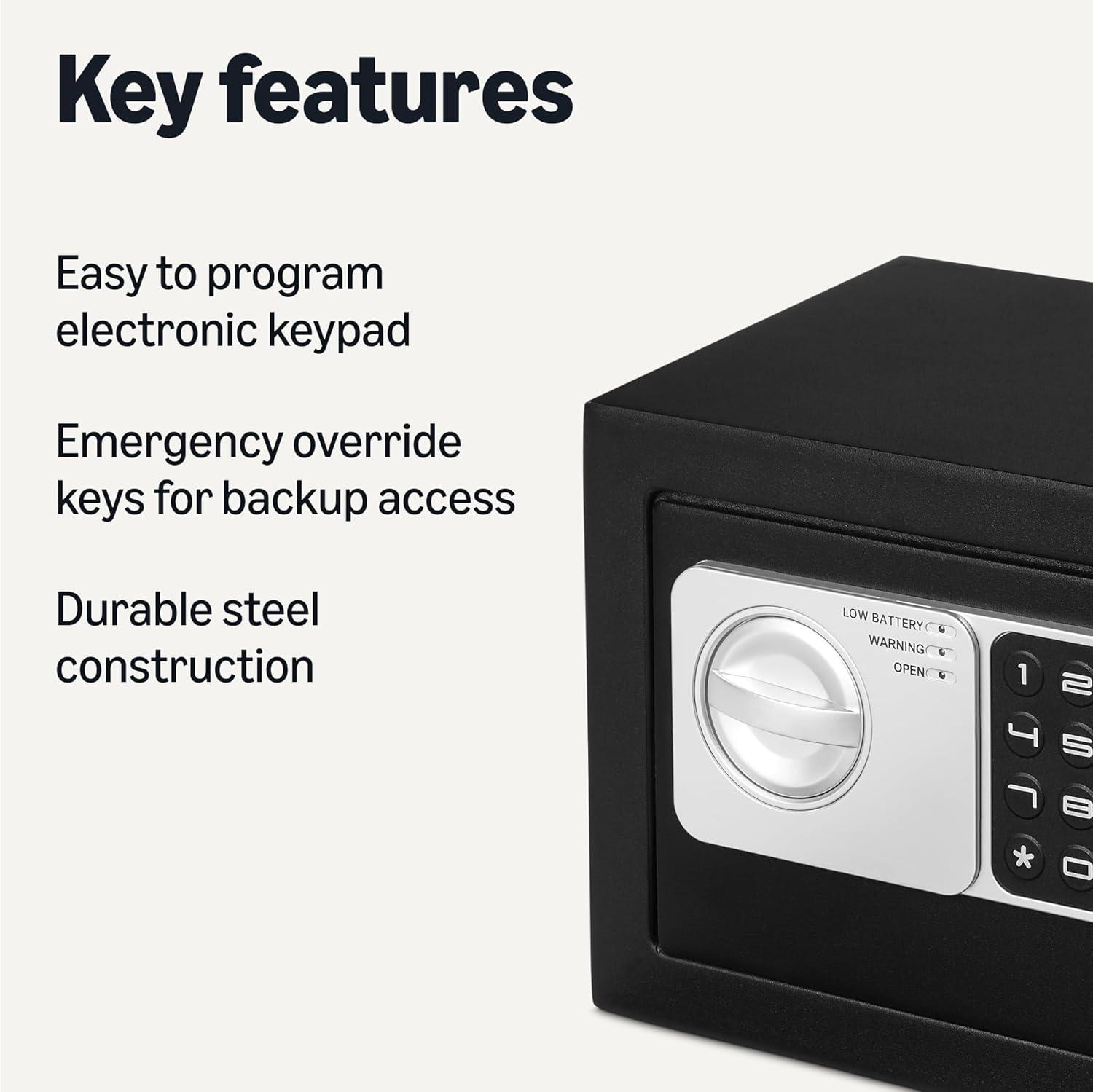 PROTECTS VALUABLES: 0.16-cubic-foot security safe for storing important documents, jewelry, cash, and more