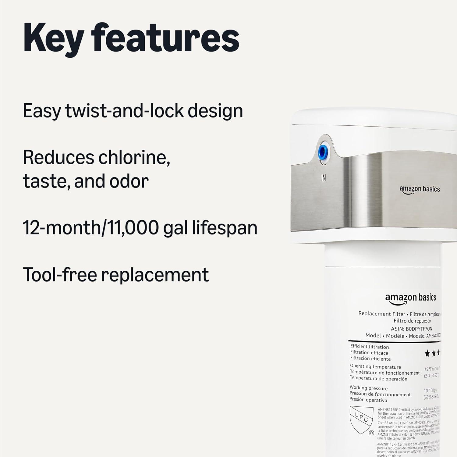 Amazon Basics Replacement Filter Cartridge for Amazon Basics Under Sink Water Filter, Reduces Chlorine, Bad Taste & Odor, NSF/ANSI 42 Certified, 11K Gallons High Capacity