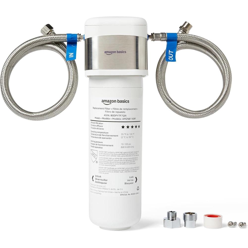 Amazon Basics Under Sink Water Filter System, NSF/ANSI 42 & 372 Certified, Service Life 1 Year, 11,000 Gallons, White