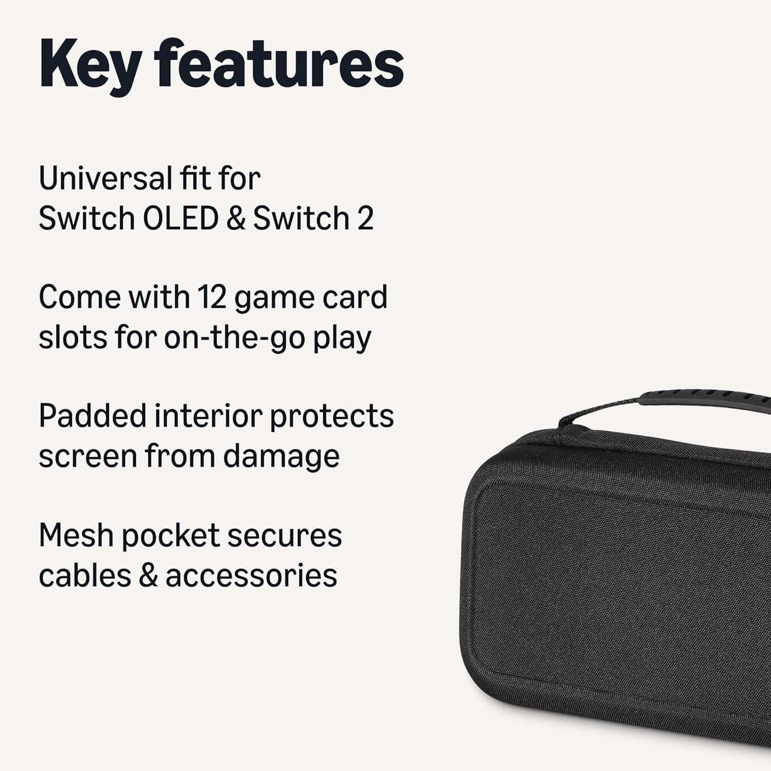 UNIVERSAL SWITCH CASE: Keep your Nintendo Switch and essential accessories safe, organized, and travel-ready in one durable case; fits Switch OLED and Switch 2 (remove tray insert for Switch 2; insert for Switch/Switch OLED)