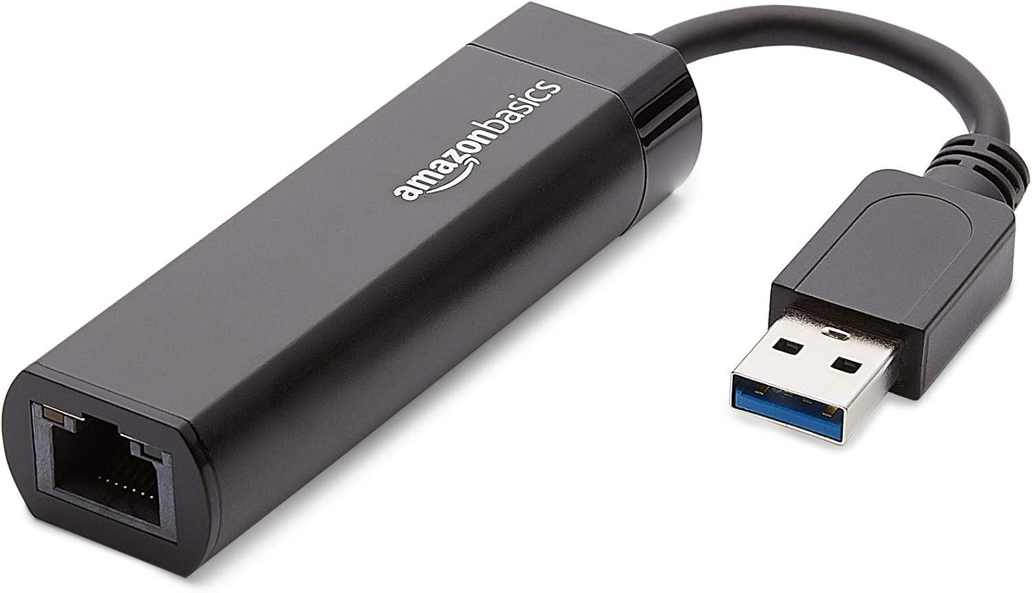 Amazon Basics USB 3.0 to 10/100/1000 Gigabit Ethernet Internet Adapter, Black(1-Pack)