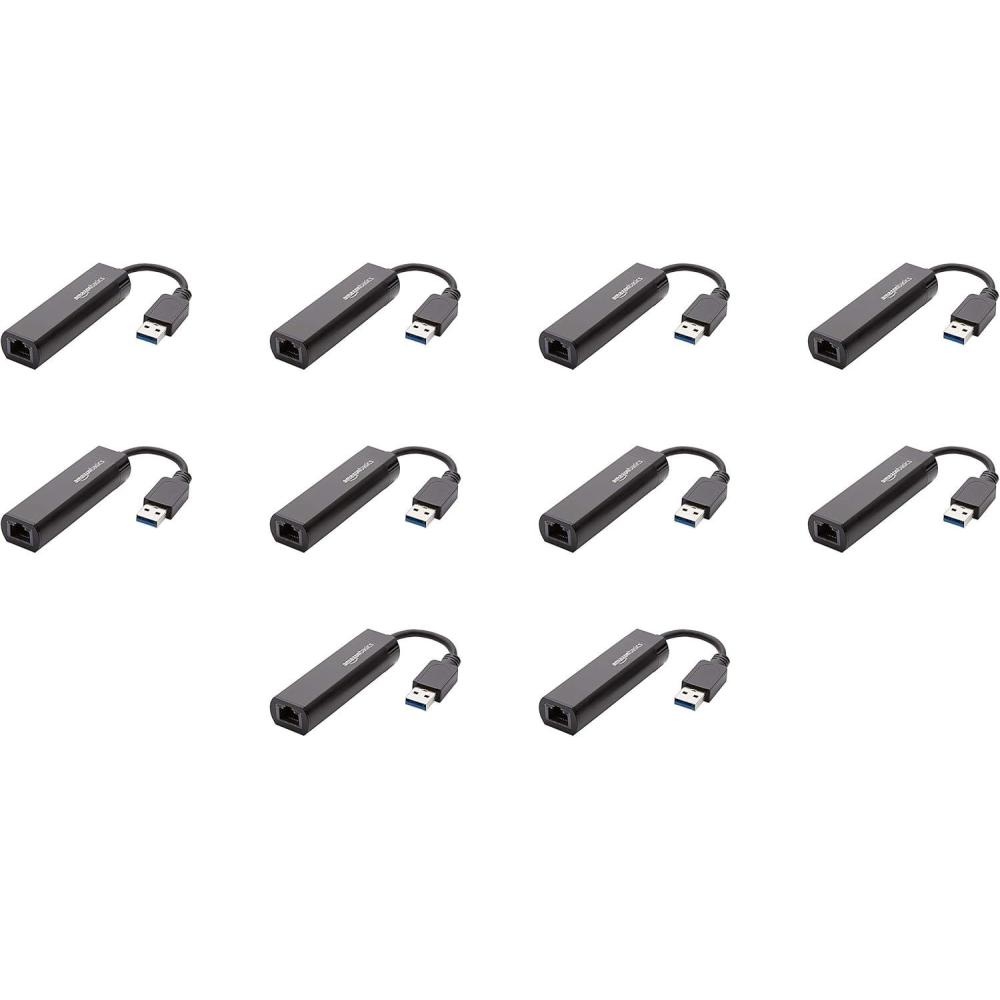 Amazon Basics USB 3.0 to 10/100/1000 Gigabit Ethernet Internet Adapter, Black(10-Pack)