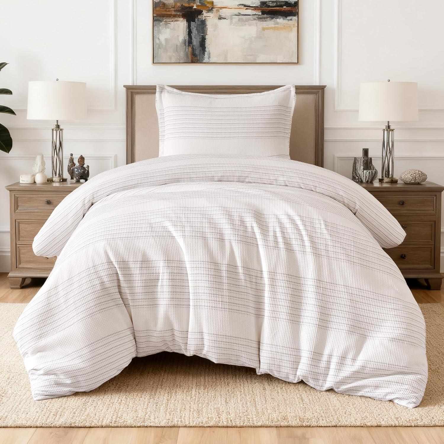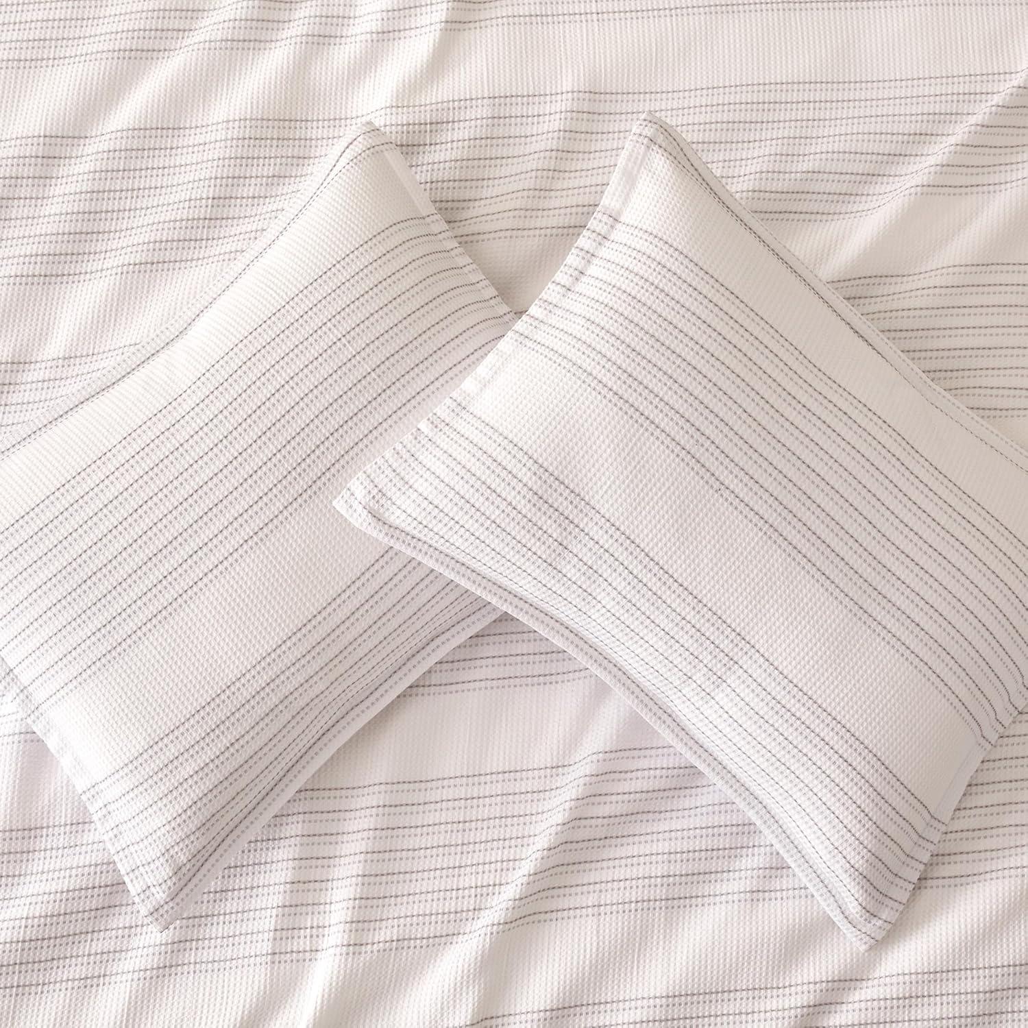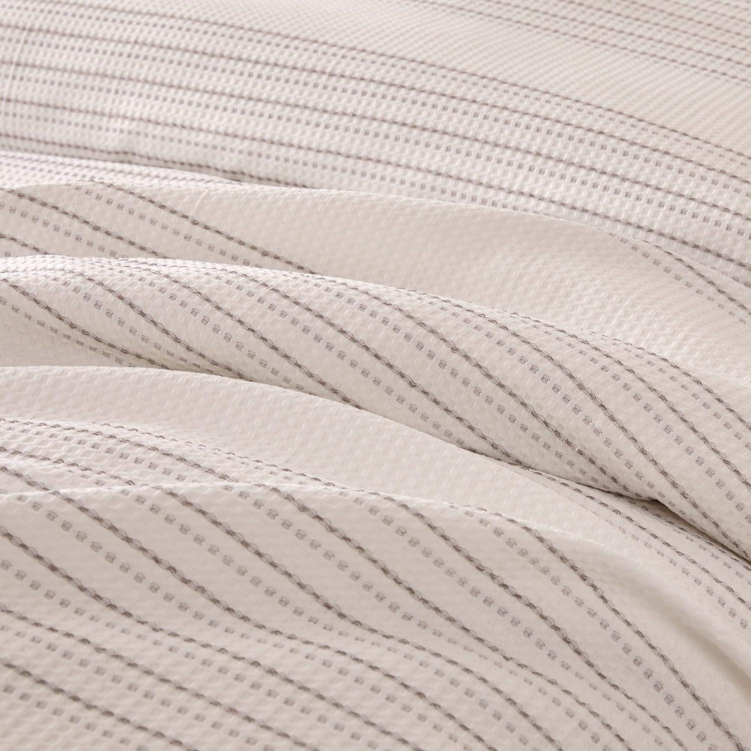 MODERN STRIPED DESIGN: Neutral waffle stripes blend with farmhouse or modern decor. Hidden envelope closure keeps comforters secure