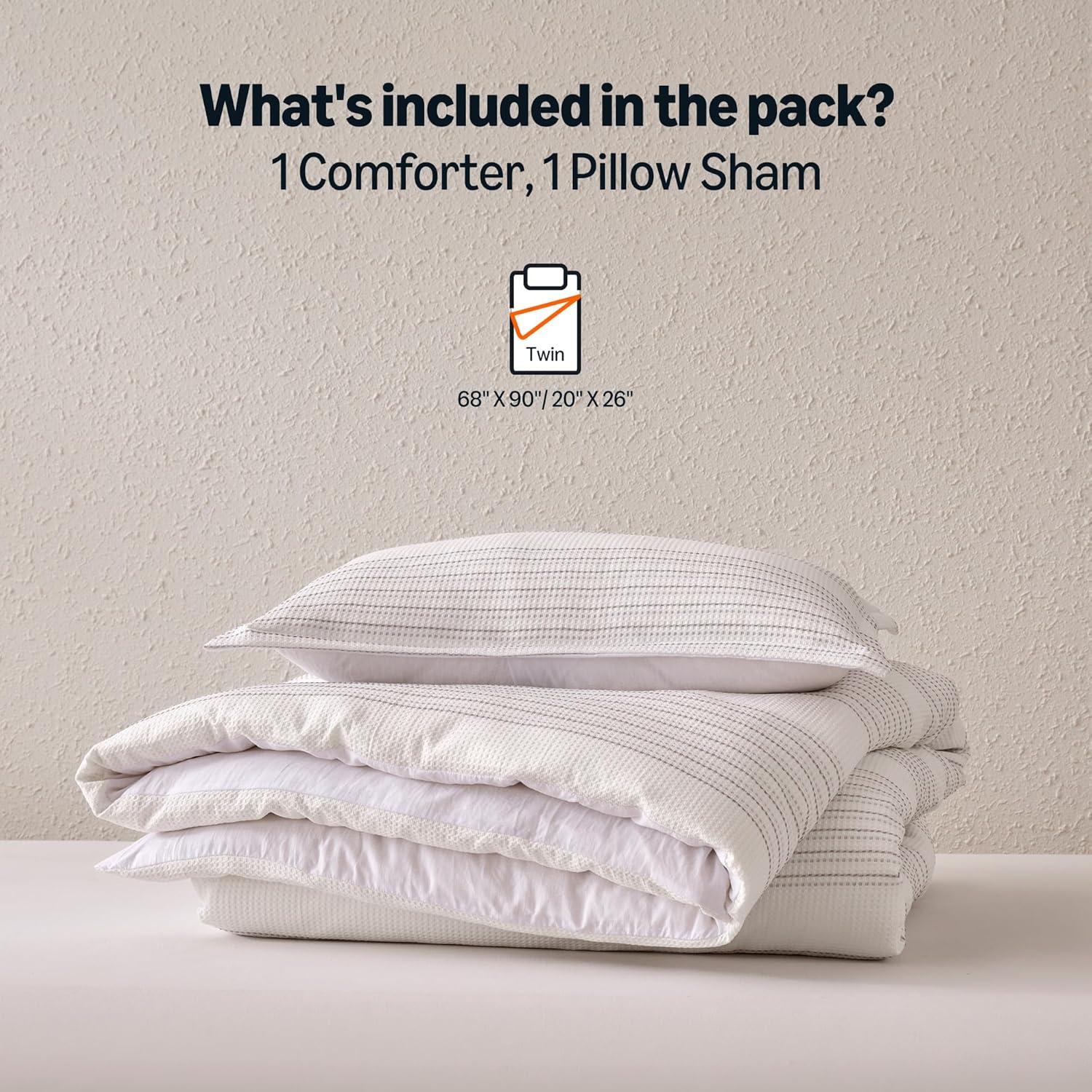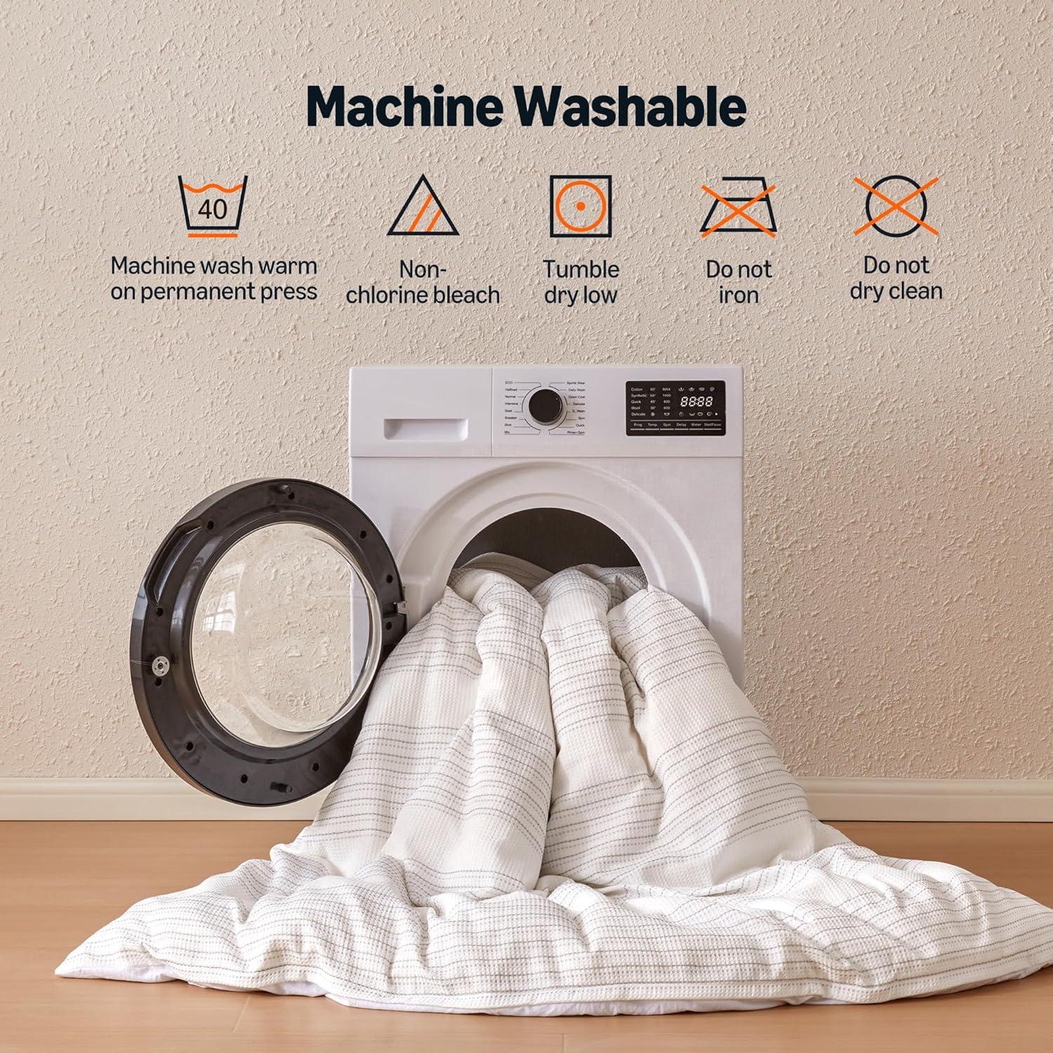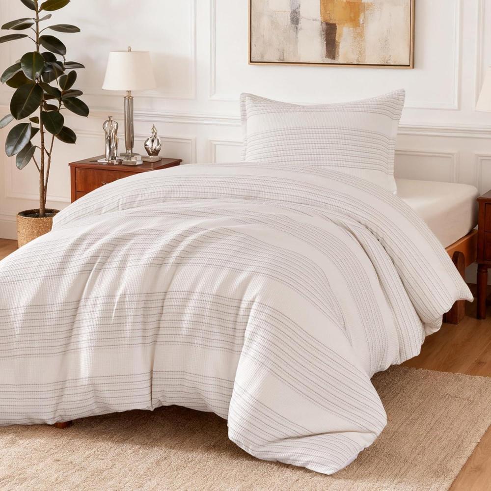 MODERN STRIPED DESIGN: Neutral waffle stripes blend with farmhouse or modern decor. Hidden envelope closure keeps comforters secure