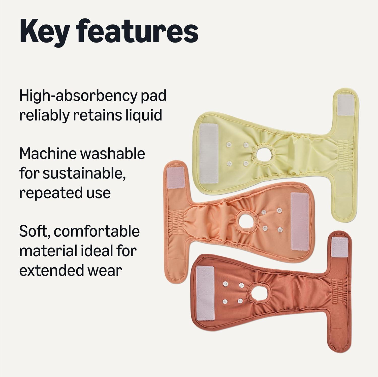 Easy to clean, machine washable dog diapers reduce waste and offer an alternative to disposable dog diapers
