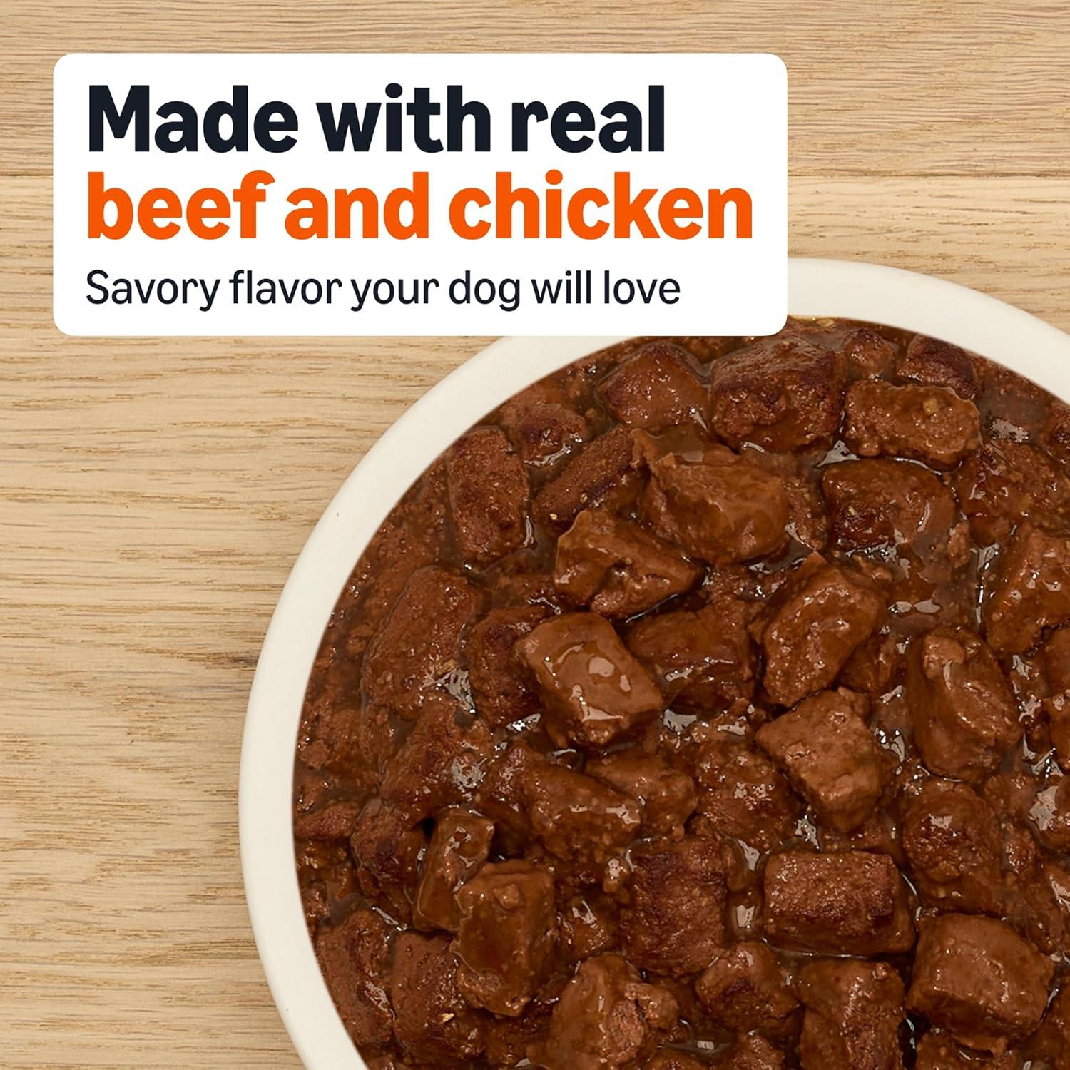Amazon Basics Wet Dog Food, Cuts in Gravy, T-Bone Flavor, Made with Real Chicken and Beef, 13.2 oz can (Pack of 12)(New York Strip Flavor)