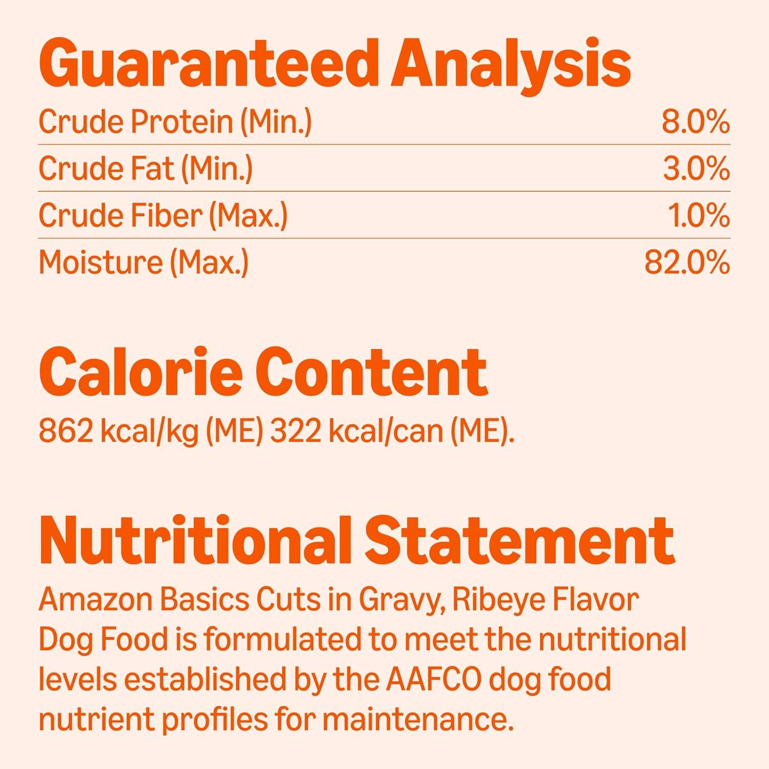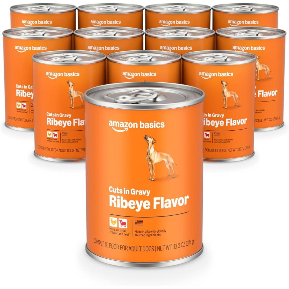 Amazon Basics Wet Dog Food, Cuts in Gravy, T-Bone Flavor, Made with Real Chicken and Beef, 13.2 oz can (Pack of 12)(Ribeye Flavor)